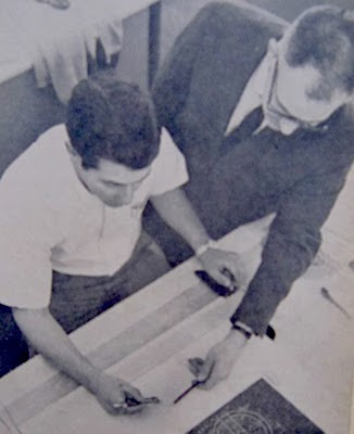 Br. Joe Palazolla - March 1965 - Pierce College Roundup newspaper. Joe is receiving instruction from Wesley Craig in technical illustration.